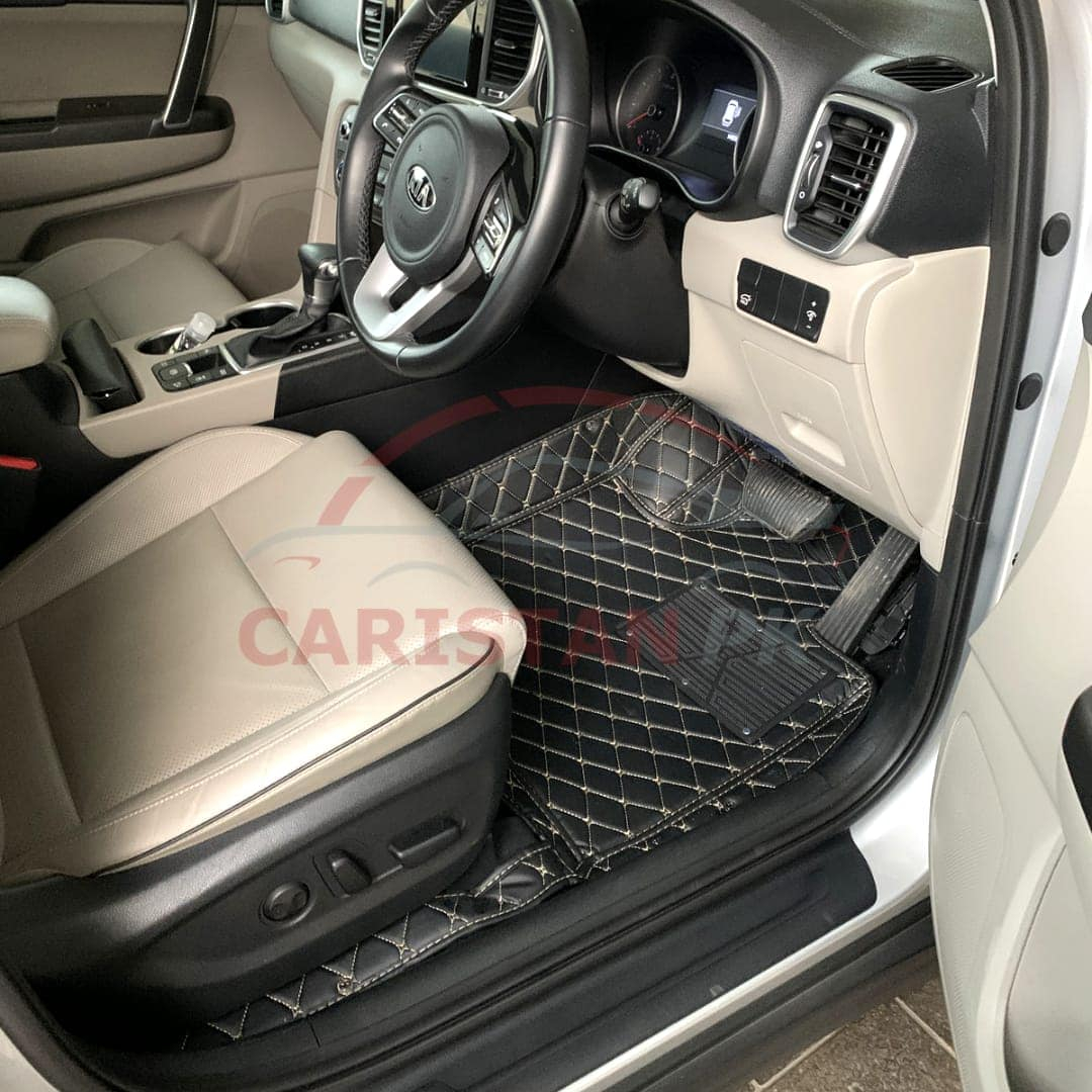 Custom Fit KIA Sportage 7D Floor Mats Black With Beige Stitch