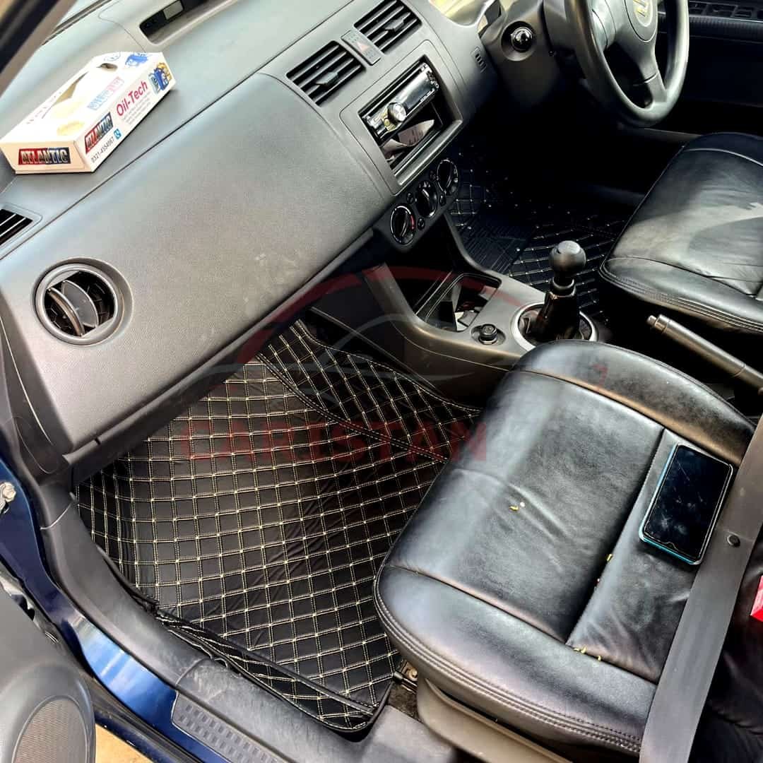 Custom Fit Suzuki Swift 7D Premium Floor Mats Black With Beige Stitch 2007-21 Model