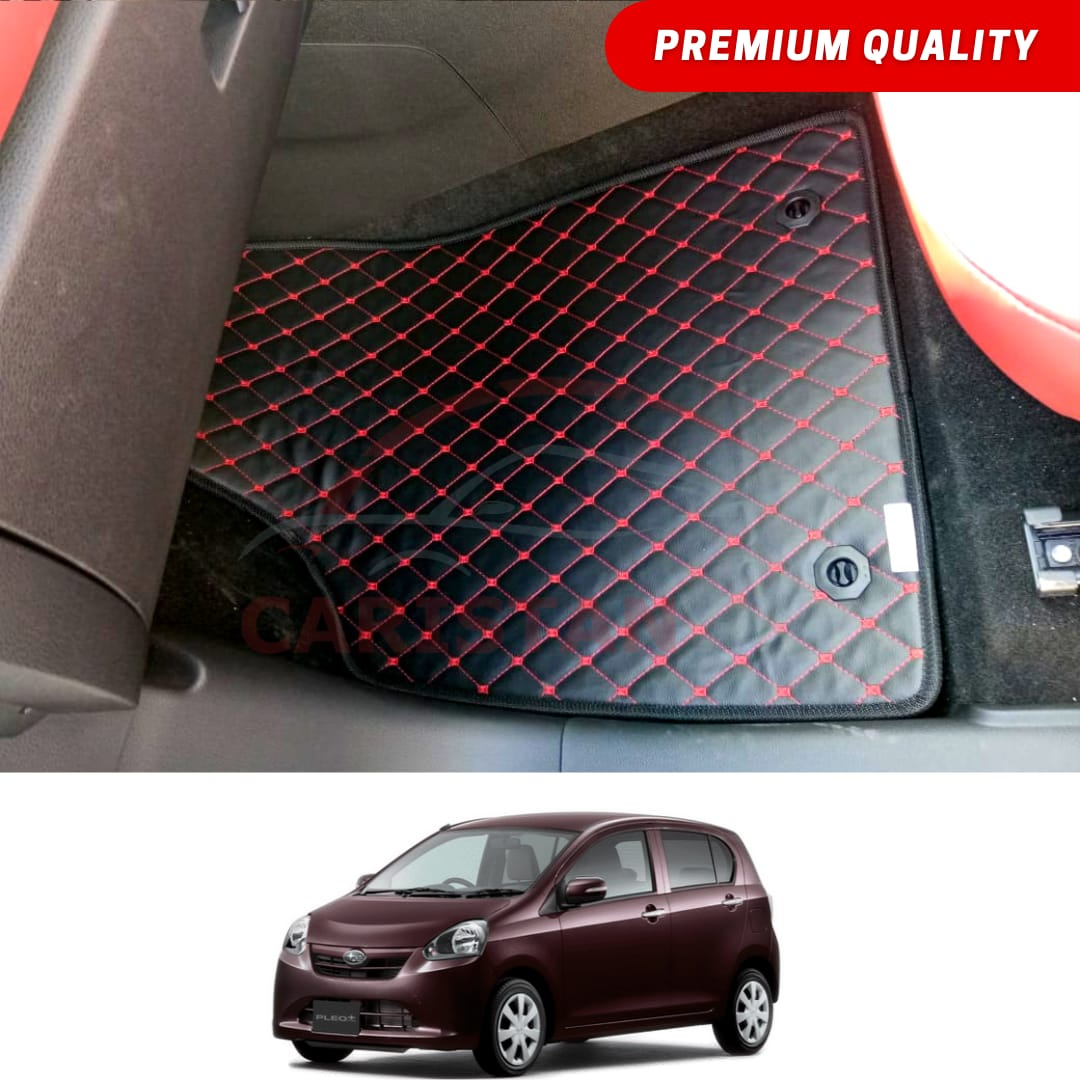 Daihatsu Mira Flat Style 7D Floor Mats Black With Red Stitch 2012-16 Model