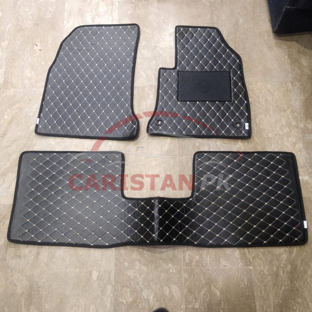 Nissan Note Flat Style 7D Floor Mats Black With Beige Stitch