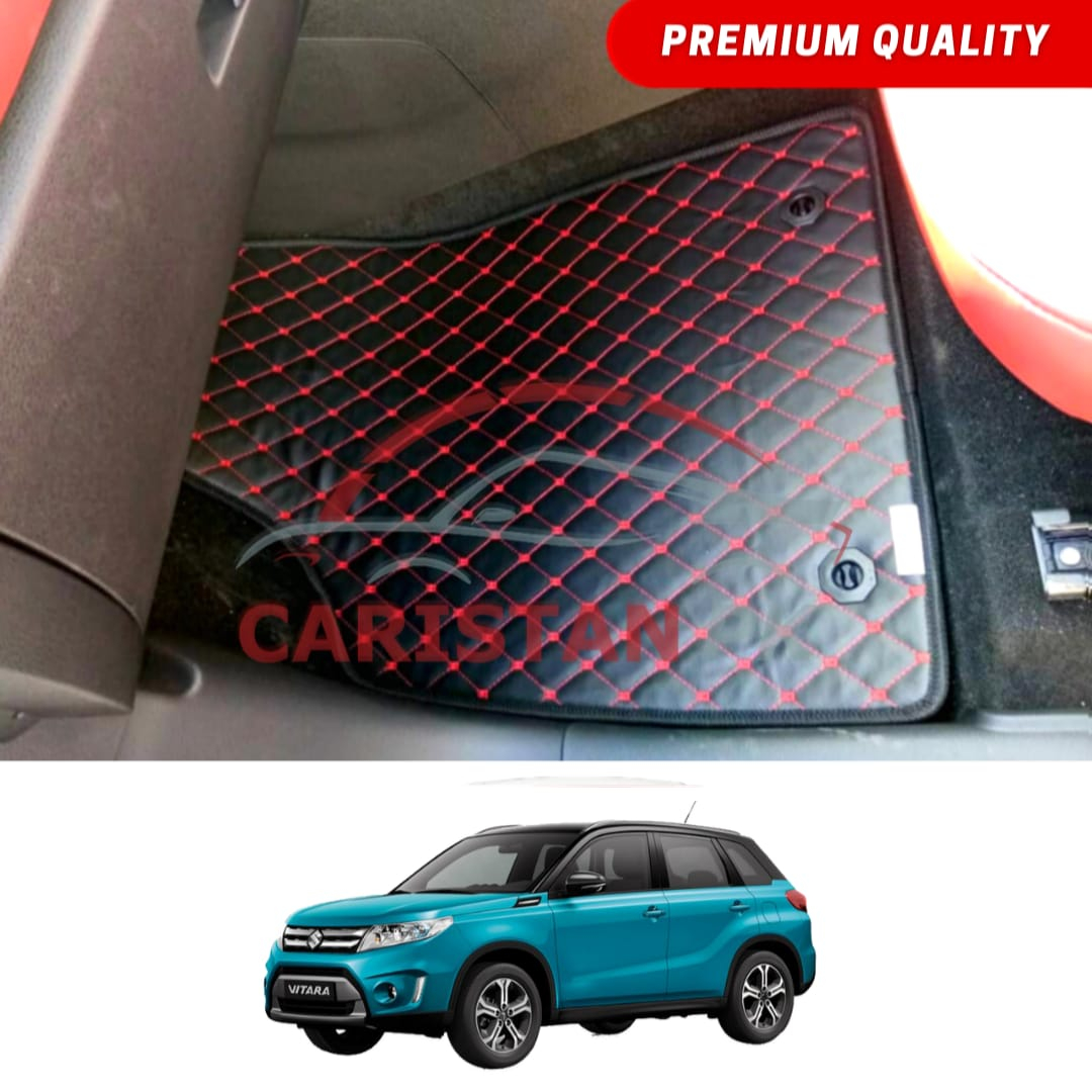 Suzuki Vitara Flat Style 7D Floor Mats Black With Red Stitch