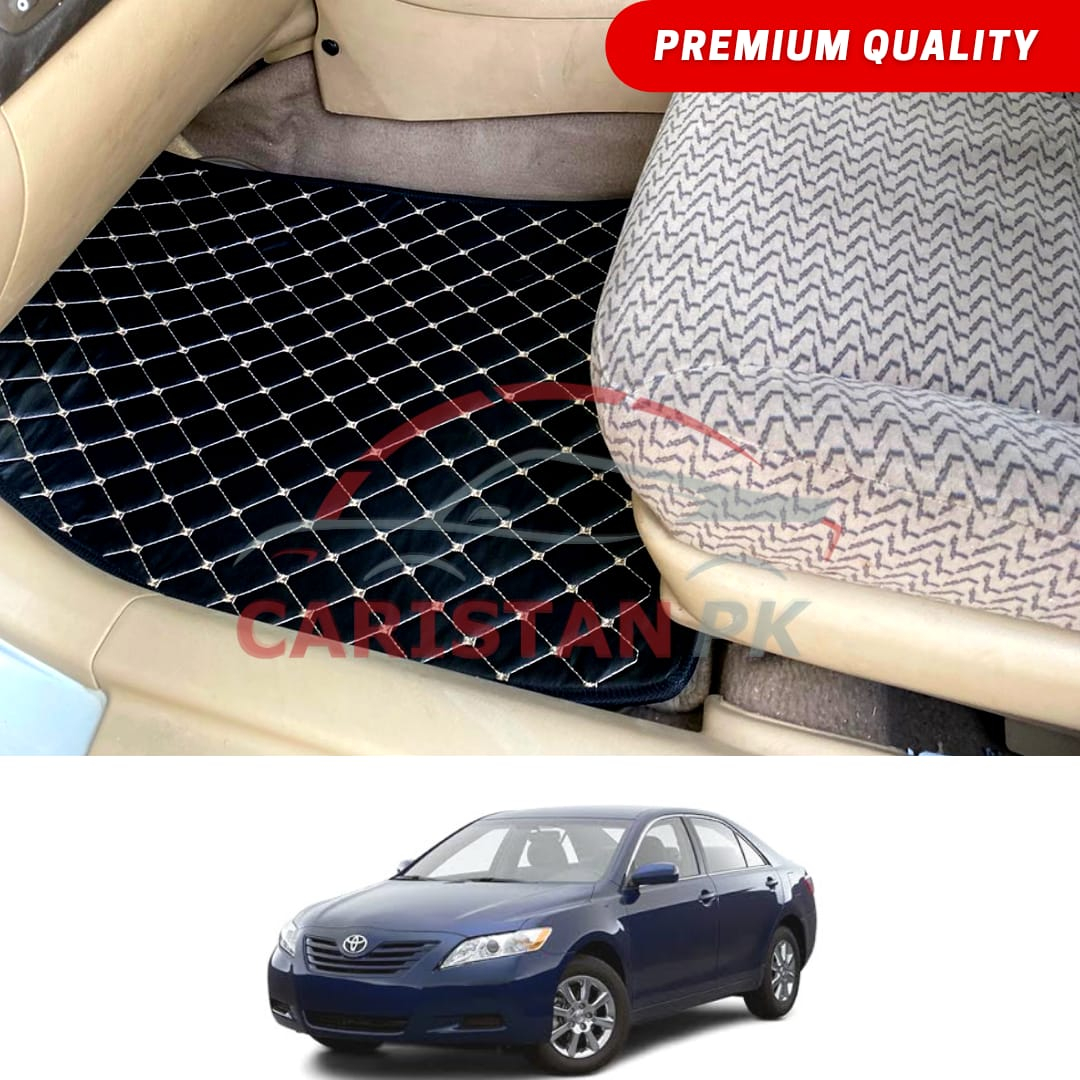 Toyota Camry Flat Style 7D Floor Mats Black With Beige Stitch 2006-11 Model