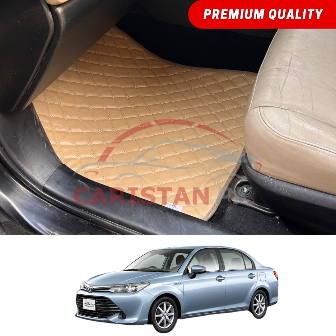 Toyota Corolla Axio Flat Style 7D Floor Mats Beige Stitch 2014-25 Model