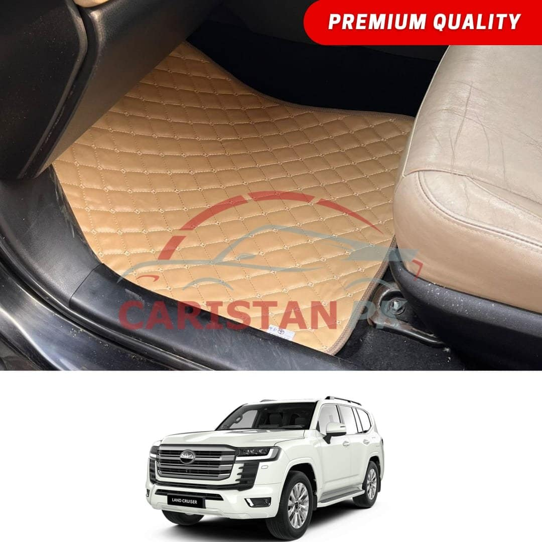 Toyota Land Cruiser Flat Style 7D Floor Mats Beige Stitch 2022-24 Model