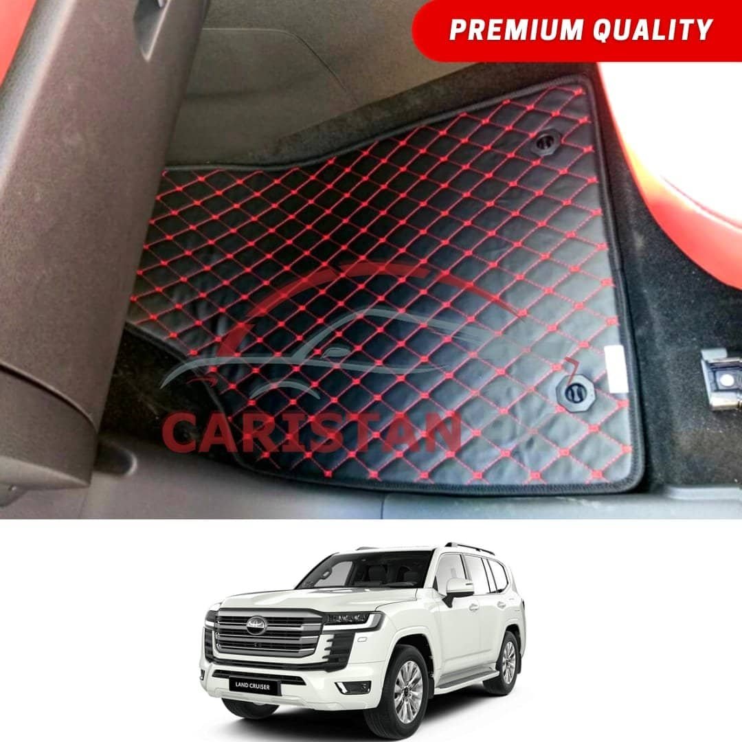 Toyota Land Cruiser Flat Style 7D Floor Mats Black With Red Stitch 2022-24 Model