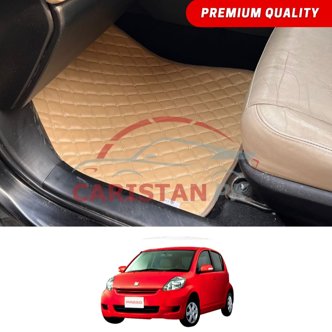 Toyota Passo Flat Style 7D Floor Mats Beige Stitch 2003-09 Model