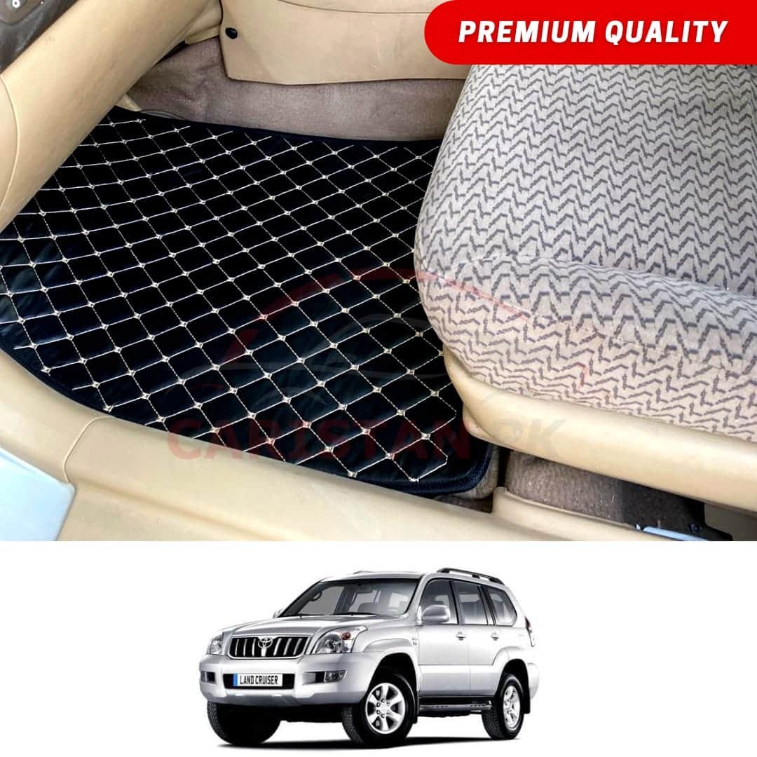 Toyota Prado FJ 120 Flat Style 7D Floor Mats Black With Beige Stitch