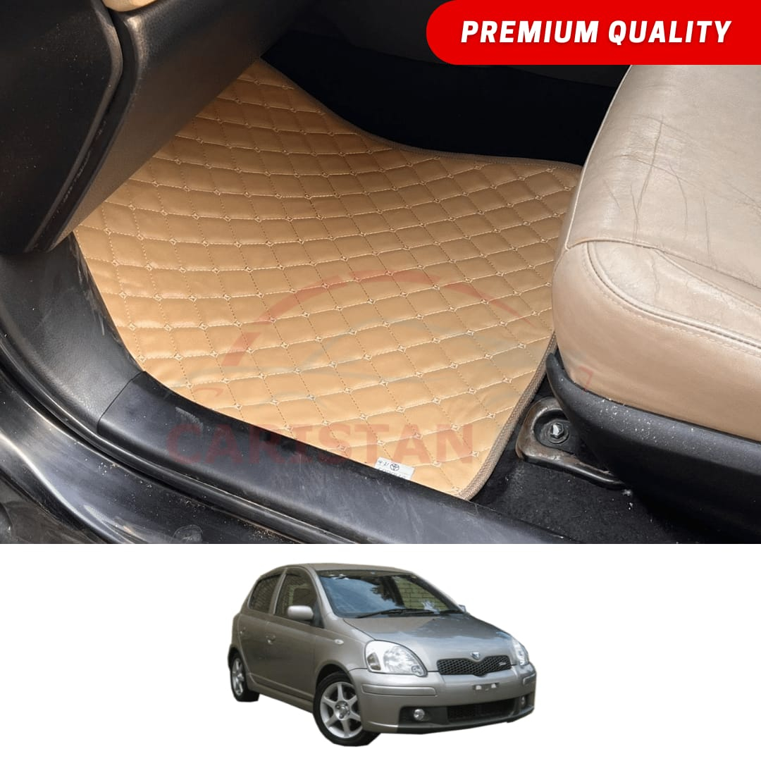 Toyota Vitz Flat Style 7D Floor Mats Beige Stitch 2000-05 Model