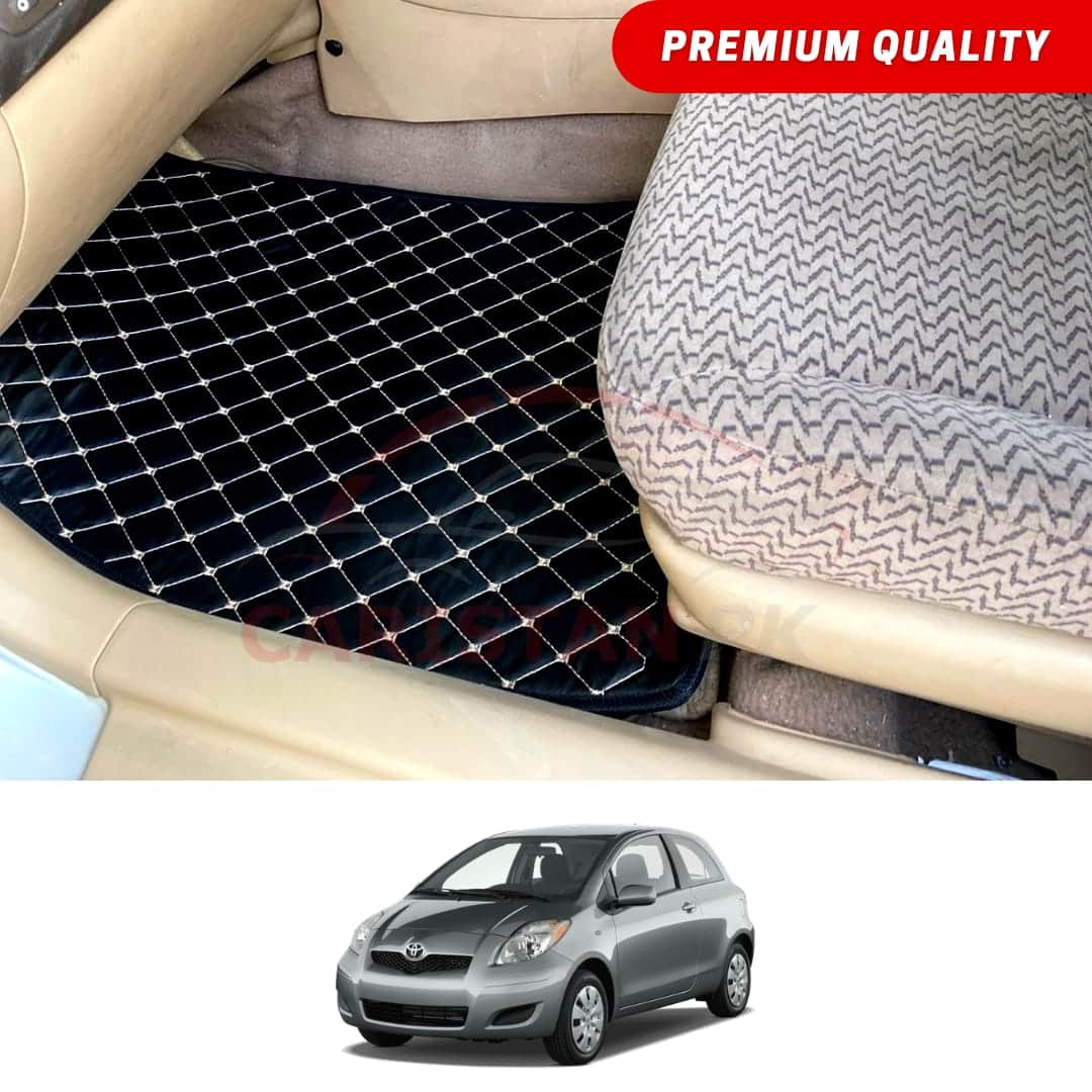 Toyota Vitz Flat Style 7D Floor Mats Black With Beige Stitch 2006-10 Model