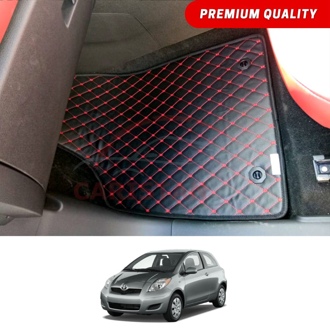 Toyota Vitz Flat Style 7D Floor Mats Black With Red Stitch 2006-10 Model