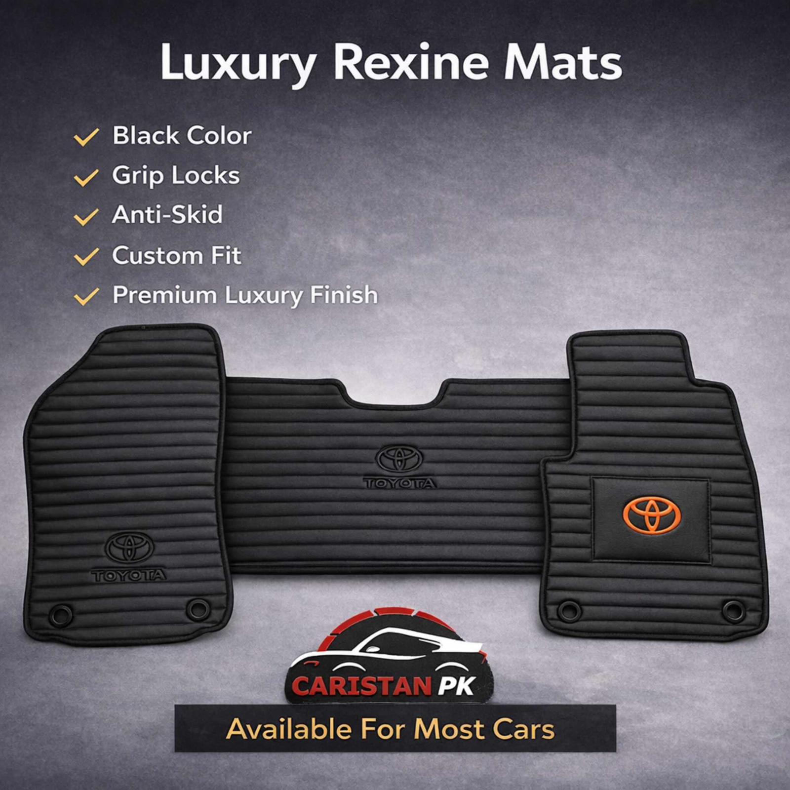 CARISTANPK Brings You A Wide Range Of Best Quality Car Floor Mats & Trunk Mats. Change Your Boring Car Mats With Our Premium Collection Of 5D Mats, 7D Mats, 9D Mats With Detachable Grass , 10D Mats With Grass, Silicone Mats ,Heavy Duty Carpet Mats, Super Soft Carpet Floor Mats, Beige Colored Carpet Mats, Jet Black Car Carpet Floor Protection, Grey Colored Carpet Mats, Grass Mats, Custom Fit Grass Mats, Universal Vehicle Floor Mats, Carpet Mats, Grass Mats, Rubber PVC Mats, Thermoplastic Rubber Mats, Laser Cut 5D Mats, TRP Mats, Custom Fit Grass Mats, Flat Style Mats Full Black Stitch, Eco-Floor Mats Full Beige Stitch, Flat Diamond Stitch Black With Beige Mats, Diamond Stitch Black With Red Stitch Car Mats, Royal Orange Diamond Cut Mats, Carpet Mats, 7D Style Diamond Stitch Trunk Mats In 5 Exciting Colors, 5D PVC Imported Trunk Mats, Foam Trunk Mats & Many More Top Quality Car Mats To Give Your Car Interior The Premium Look & Protection It Deserves