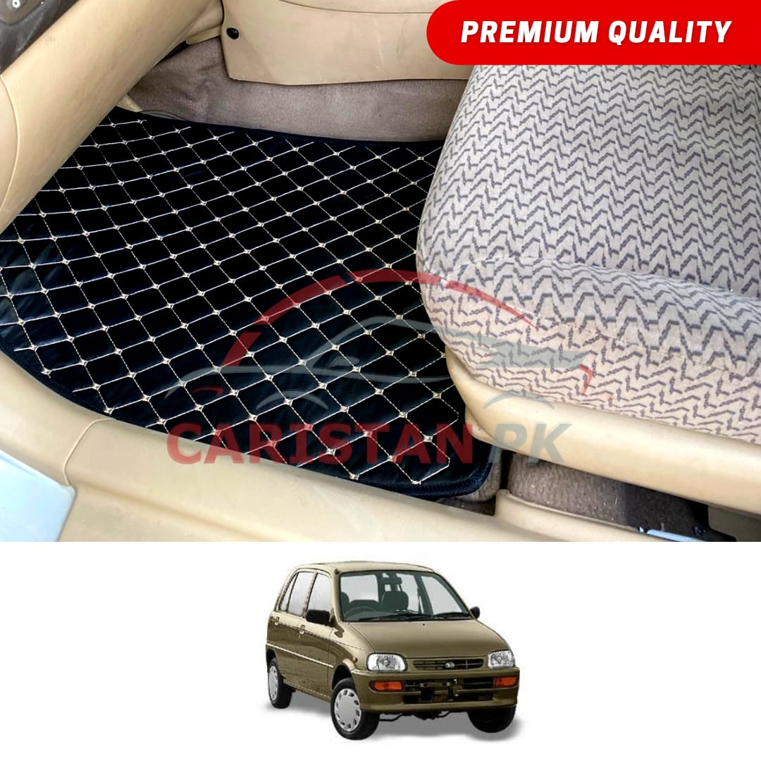 Daihatsu Cuore Flat Style 7D Floor Mats Black With Beige Stitch
