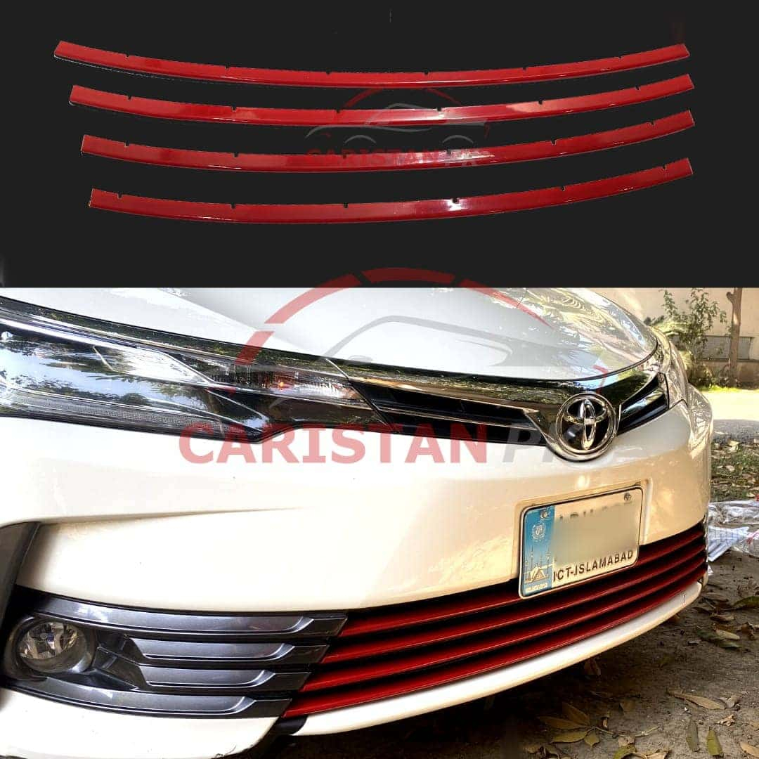 What’s Included : Toyota Corolla Lower Grille Red Trim (Set of 3 Piece With Double Sided Tape Attached)